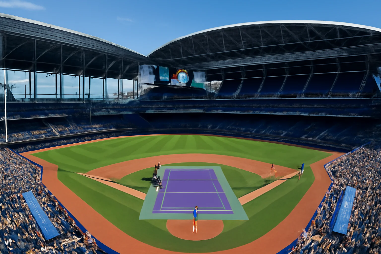 O diferencial do evento está na instalação de uma quadra de tênis de superfície dura sobre o campo de beisebol, permitindo uma visão privilegiada do jogo. Um grande telão de LED, com alta definição, amplia a visibilidade de espectadores e transmissão, reforçando a modernidade do projeto. O estádio também apresenta detalhes que remetem à cultura pop e ao esporte, como o Museu do Bobblehead, com mais de 600 bonecos de jogadores de beisebol, e cores vibrantes inspiradas na arte de Joan Miró, simbolizando a fusão de esportes, cultura e inovação tecnológica.
